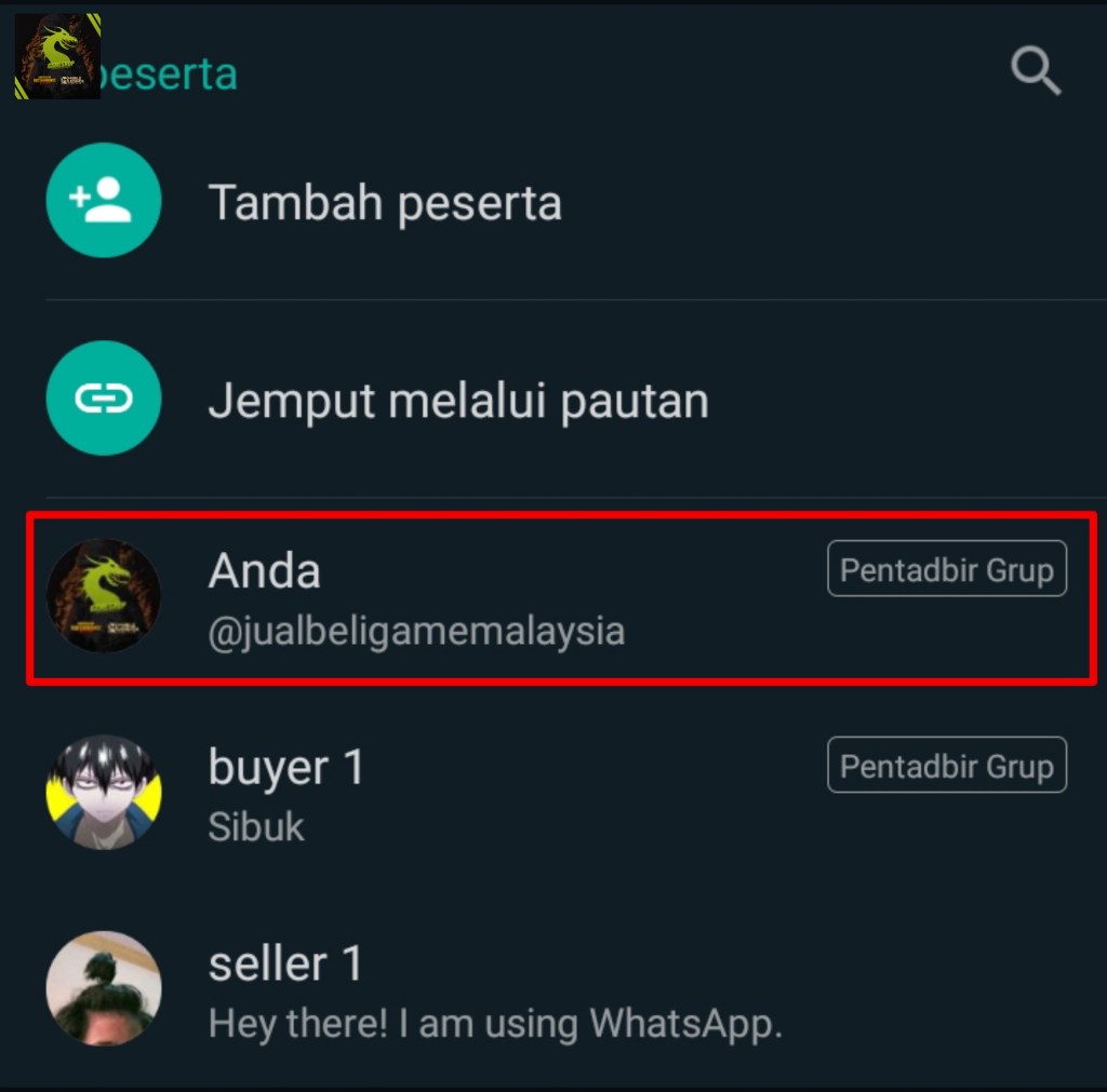 jadikan saya pentadbir dalam grub chat transaction